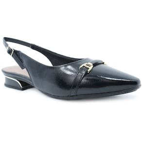 Moderna e discreta, acompanha seu ritmo agitado, garantindo conforto e muita elegância durante todo o dia. A tendência traz uma sensação de aconchego e elegância aos calçados, possui bico fino, traseira aberta, fechamento em fivela e detalhe em dourado no cabedal. Combine o modelo com diversas peças. Acrescente acessórios sofisticados e esteja pronta para arrasar em qualquer ocasião.