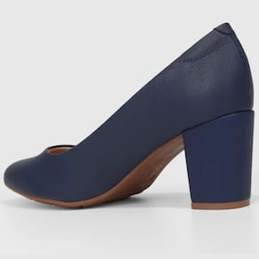 Confeccionado em material sintético , tem solado de borracha, bico fino e salto bloco. Conforto e estilo garantido!