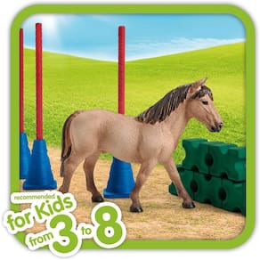 Explore a fazenda com o slalom Pony, um divertido e educativo brinquedo de Schleich! Este conjunto de 2.244" x 3.543" x 5.394" é autenticamente detalhado, e é ideal para horas de jogo imaginativo. Obstáculos podem ser combinados de várias maneiras! Adequado para cavalos grandes e pequenos! 12 peças.