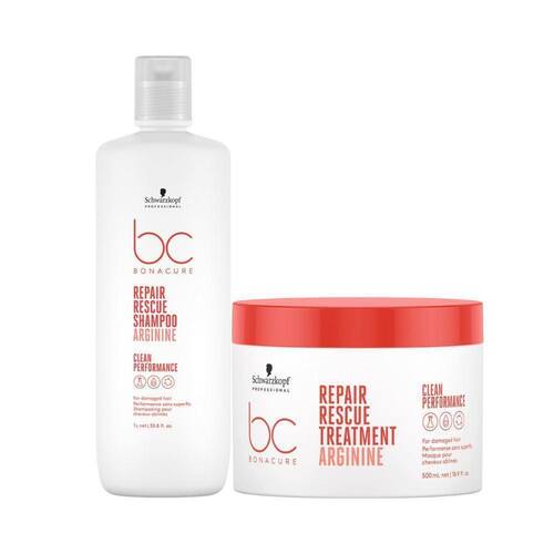 Schwarzkopf Bc Repair Rescue Arginine Shampoo 1L E Máscara 500Ml A linha BC Repair Rescue Arginine é formulado para cabelos danificados. Reverte instantaneamente 3 anos de danos em uma única aplicação.