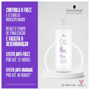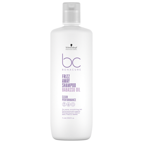 O Shampoo Schwarzkopf Professional BC Bonacure Clean Performance Frizz Away tem fórmula inteligente enriquecida com Óleo de Babaçu, Queratina Vegana e Tecnologia Equalizadora de Células que auxiliam na redução do frizz de lavagem em lavagem, diminuindo assim o tempo de finalização e facilitando o desembaraçar. Seu uso suaviza a superfície do fio e, além de melhorar a maleabilidade, proporciona brilho intenso.