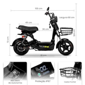 FORTE E RESISTENTE: A scooter vem equipada com farol, luz de freio, setas dianteiras, tudo podendo ser acionado através dos botões localizados no guidão, permitindo assim uma melhor visibilidade e segurança. Possui buzina para alertar pedestres ou outros ciclistas sobre a presença da scooter. Além de tudo, vem equipada com alarme. Sua partida é realizada através da chave de ignição. Possui espelhos retrovisores que fornecem maior segurança. Todas funcionalidades lhe permitem total controle sobre sua scooter.