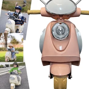 Modelo: Bella T3 Scooter elétrica retrô infantil Design clássico com toques modernos Partida simulada Funções de frente e ré Faróis de LED Indicador de bateria Entrada USB Conectividade Bluetooth Reproduz som Bagageiro traseiro Comporta 1 criança Suporta até 30kg Idade recomendada: a partir de 3 anos (verifique medidas e peso suportado) Bateria: 6V recarregável Carregador bivolt incluso Peso do produto: 6,1kg Dimensões: Comprimento 92 cm x Largura 35 cm x Altura 75 cm
