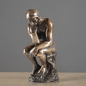 Material: cobre fundido Tamanho: 8* 10* 20 cm Peso: 1000 g Escultura clássica de bronze “Thinker” que captura a essência do pensamento profundo e da reflexão filosófica. Feito de bronze de alta qualidade, com detalhes intrincados que destacam a pose contemplativa do pensador. Ideal para adicionar um toque sofisticado a salas de estar, estudos, escritórios ou ambientes de decoração. Dimensões: 8x10x20 cm, tornando-o um tamanho perfeito para mesas, prateleiras ou mesas de exibição. Uma peça atemporal que traz uma sensação de sabedoria e profundidade intelectual a qualquer espaço.