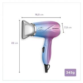 Pode ser utilizado em ambas voltagens: 127v e 220v. Basta ajustar a chave seletora e ter a liberdade para usar seu secador em qualquer lugar