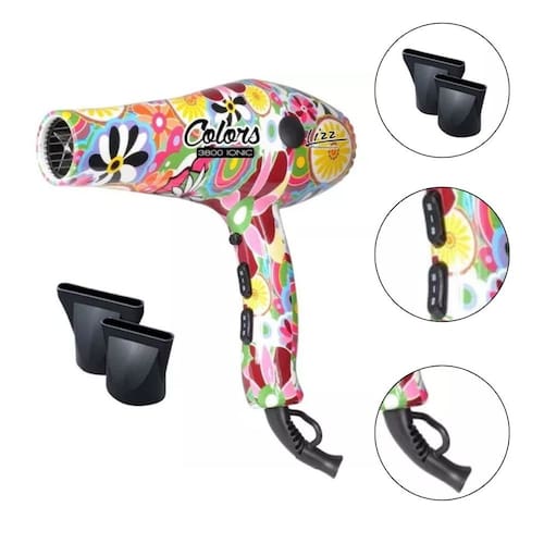 Marca: Lizz Modelo: Colors 3800 Cor: Multicolorido Potência: 1900W Voltagem: 127V Combinações de velocidade e temperatura: 6 Nº de velocidades: 2 Nº de temperaturas: 3 Função de jato frio Material: Cerâmica Motor durável Fio de comprimento estendido Dimensões e Peso: