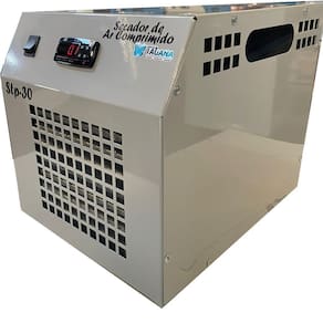 Secador De Ar Comprimido 30 Pcm Stp-30 Compressor 15/25 Pés Secador de ar comprimido mod. STP-30, capacidade Scfm / Nm 30/51 com purificador de ar embutido, descarga de impurezas automáticas, placa eletrônica com sistema inteligente para controle de temperatura de ponto de orvalho entre -35ºC. A +10ºC, com indicador de temperatura, gás de refrigeração R-134, conexão 1/2 BSP, pintura epóxi, estrutura em aço. Marca: Tauana