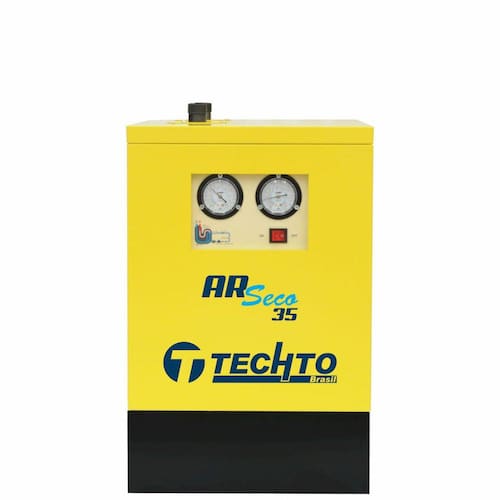 Secador Techto Ar Seco 35 Aplicação:Compressor de Ar 15 à 40 pcm Secador de ar por refrigeração projetado com tecnologia de ponta para assegurar ótimo desempenho com alta eficiência, retirando até 99% da água liquefeita e não permite a formação de gelo e nem bloqueia o fluxo de ar!Com sistema de controle analógico, o secador possui painel de simples e fácil operação. - Temperatura de entrada do ar até 40ºC- Temperatura máxima do meio ambiente até 40ºC (padrão)- Ótimo desempenho- Alta eficiência Especificações TécnicasVazão (l/min) - 991Vazão (pcm) - 35Pressão de Trabalho (bar(g)) - 6 à 12Pressão de Trabalho (psig) - 87 à 174Temperatura de Entrada ºC (min.) - 05Temperatura de Entrada ºC (max.) - 40Ponto de Orvalho ºC - 3 à 10Tipo de Gás Refrigerante - R134APotência (W) - 250Alimentação (V/Fase/HZ) - 220/1/60Conexões (Entrada / Saída) - 1" BSPPeso (kg) - 36Dimensões (mm) - 650 x 420 x 640 Referência de Fábrica3073