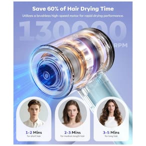 O Secador de Cabelo ultrarrápido da Cosy Companions, equipado com um motor sem escova de 130.000 RPM, proporciona um fluxo de ar de alta velocidade de 32 m/s para secar o cabelo 5 vezes mais rápido em 15 minutos, enquanto mantém a umidade natural dos fios, sendo perfeito para cabelos grossos, cacheados ou danificados. Este secador de cabelo de alta velocidade contém até 300 milhões de íons negativos por segundo para eliminar o frizz, suavizar os fios e aumentar o brilho. Sua tecnologia de concentração de íons mantém a umidade, reduzindo o frizz e melhorando a elasticidade, ideal para cabelos coloridos ou processados quimicamente. Com um chip de proteção térmica e sensores em tempo real, o secador de cabelo possui três configurações de calor codificadas por cores e 2 velocidades, permitindo que você estilize da maneira que desejar. Pressione o botão por 3 segundos para ativar o "Ciclo Suave" para couros cabeludos sensíveis. Projetado para estilização sem esforço em qualquer lugar, o design ergonômico e pronto para viagem deste secador de cabelo iônico reduz a tensão nos braços, enquanto seu plugue de segurança garante o uso seguro em casa ou no salão. Com túneis de fluxo de ar acústico para supressão de ruído, este secador de cabelo profissional opera silenciosamente, sendo ideal para estadias em hotéis, casas compartilhadas e ambientes onde o silêncio é primordial.
