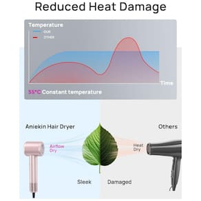 O secador de cabelo ANIEKIN oferece uma secagem ultra rápida graças ao motor sem escovas de alta velocidade de 110.000 RPM, com velocidade do vento de até 26 m/s e fluxo de ar forte. Seca o cabelo em pouco tempo, sendo 5 vezes mais rápido do que secadores tradicionais. Um presente extraordinário para qualquer ocasião, proporcionando resultados de salão em minutos. Este secador de cabelo profissional é ideal para aniversários, Natal, Dia das Mães, Dia dos Namorados e outras datas especiais. Mime seus entes queridos ou a si mesmo com cabelos luxuosos e saudáveis todos os dias. Com motor potente e tecnologia de controle térmico, o secador possui controle inteligente avançado de temperatura, protegendo os fios do calor excessivo. O motor e o duto de ar são otimizados, o som é cuidadosamente modulado para reduzir o ruído e proporcionar uma experiência agradável de secagem. O secador de cabelo iônico negativo libera 200 milhões de íons negativos durante o processo de secagem, mantendo o cabelo sedoso e retendo a umidade. Adeus ao frizz, estática e ressecamento. Com ajustes de calor personalizáveis e modo de resfriamento, oferece 4 configurações precisas de calor - Frio, Morno, Quente e Ciclo - para todos os tipos de cabelo e estações do ano. Experimente o modo de resfriamento para um blowout refrescante no verão, ou use o Ciclo para alternar temperaturas com conforto durante a modelagem. Leve para casa, viagens ou salão, o secador é leve, compacto e seguro, com design ergonômico, controles simples e filtro para evitar que os fios sejam sugados. Perfeito para uso em movimento, incluindo crianças e gestantes. Ideal como presente de Dia dos Namorados, Dia das Mães e aniversário. Com qualidade premium e design elegante, tem construção durável para desempenho duradouro, sendo perfeito para ocasiões especiais e uso diário. Com visual moderno e embalagem premium, é uma excelente escolha para família e amigos.