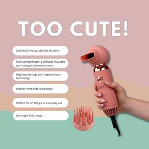 - Secador de cabelo compacto com tecnologia avançada. Nosso secador de cabelo compacto Too Cute utiliza tecnologia iônica negativa para reduzir o frizz e melhorar o brilho do seu cabelo, oferecendo resultados de explosão de qualidade de salão em casa.