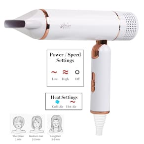 Aria Beauty Secador de cabelo dobrável ultra elegante - secador de cabelo com duas configurações de velocidade e calor - adequado para todos os tipos e texturas de cabelo - branco - 1 peça