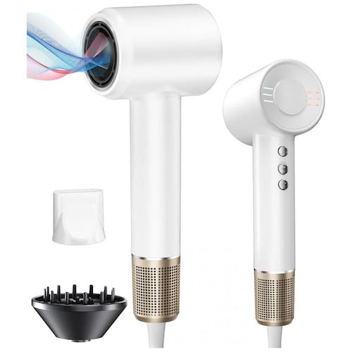 Obtenha cabelos secos e estilosos em um piscar de olhos com o secador de cabelo Bopcal. Com um motor sem escovas de 150.000 RPM, ele seca seu cabelo em apenas 15 minutos, 5 vezes mais rápido do que os secadores tradicionais. Sua corrente de ar de alta velocidade penetra em cada fio, reduzindo o tempo de secagem enquanto realça a suavidade e o brilho. Utilizando tecnologia iônica avançada, libera 500 milhões de íons negativos durante a secagem, reduzindo efetivamente 70% do frizz, deixando o cabelo suave e brilhante. Além disso, a temperatura e velocidade são personalizáveis, com 4 opções de calor, incluindo ar frio, e 3 configurações de velocidade para atender às suas necessidades. O design ergonômico e compacto proporciona manuseio sem esforço, sendo ideal para uso doméstico, viagens e salões. Com tecnologia de redução de ruído de 8 camadas, mantém os níveis de ruído abaixo de 58 dB, permitindo que você estilize em paz. Fácil de limpar, possui um filtro removível que prolonga a vida útil do secador. Transforme seu ritual de secagem de cabelo com o secador Bopcal.