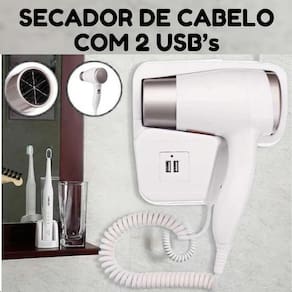Secador de cabelo branco compacto com suporte 220v Descrição do anúncio: Adicione sofisticação ao seu banheiro com o secador de cabelo de parede, perfeito para uso em casa ou em ambientes como hotéis, pousadas e spas. Compacto, leve e poderoso, este secador iônico cuida da saúde do seu cabelo, proporcionando um brilho e suavidade excepcionais. Com seu design resistente e funcionalidade avançada, ele é ideal para qualquer tipo de cabelo, seja liso, encaracolado ou ondulado. Conteúdo da embalagem: 1 secador de cabelo de parede 1 cabo espiral de poliuretano extensível até 1,6 metros Manual de instruções Características: Design compacto: fácil de armazenar e ideal para viagens. Funcionalidade iônica: reduz o tempo de secagem e elimina o frizz, proporcionando brilho e suavidade ao cabelo. Resistência: feito para suportar quedas, compressão e altas temperaturas. Ventilação poderosa: baixo nível de ruído e excelente dissipação de calor. Especificações: Potência: 1300w Frequência: 50hz Comprimento do cabo de energia: 70cm Comprimento do cabo do secador: até 1,20m cabo espiral Configurações: 2 ajustes ar frio e quente Material: plástico resistente Cor: branco Dimensões: 24 x 17,5 x 17cm 2x entradas usb Principais perguntas sobre o produto e respostas: 1 este secador é adequado para uso doméstico Sim, ele é ideal tanto para uso doméstico quanto para ambientes comerciais como hotéis e spas. 2 o cabo do secador é resistente Sim, o cabo espiral de poliuretano é altamente resistente, com boa extensibilidade e rápida retração. 3 posso usar este secador em uma tomada comum Sim, ele é compatível com tomadas de 10a. 4 o secador é barulhento Não, ele possui uma ventilação poderosa com baixo nível de ruído. 5 este secador pode ser em cabelos molhados Sim, ele é projetado para secar rapidamente cabelos molhados, mantendo a umidade natural e evitando danos. Marca: Não Informado