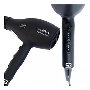 Caracteristica: Potência watts : 2000 Consumo kw/h :2 Cor: preto Níveis de velocidade: 2 Níveis de temperaturas: 3 Diferencial do produto: jato de ar frio Marca: britânia Acessórios: concentrador Motor: dc + protetor térmico Comprimento do cordão elétrico m : 1,9 Voltagem: 110v
