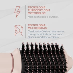 Motor BLDC Turbo de alta rotaçãoAcessórios versáteis: bocal concentrador, 2 cacheadores, escova secadora, bolsa para transporteTecnologia Silence Turbo4 temperaturas, 3 velocidades + jato de ar frioTourmaline ÍonEscova com Tecnologia MulticerdasCabo de 1,8m