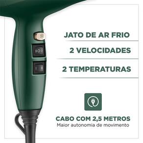 POTÊNCIA: 2000W: Alta potência para uma secagem rápida e eficiente.