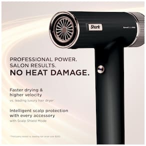 Conheça o Sistema de Secador de Cabelo Shark SpeedStyle Pro. Criado com potência profissional e sem danos por calor para resultados de salão em casa em cabelos cacheados e crespos. Obtenha penteados deslumbrantes, cachos definidos e brilho intenso da raiz às pontas com o fluxo de ar de alta velocidade que atinge de 0 a 160 km/h em menos de um segundo. Inclui o Escudo do Couro Cabeludo projetado para proteger o crescimento capilar novo do calor extremo. DESEMPENHO PROFISSIONAL Estilize com fluxo de ar de alta velocidade para secagem ultra rápida sem danos por calor. Eleve seu estilo ao obter penteados impecáveis de salão, cachos definidos e brilho intenso em casa. FLUXO DE AR DE ALTA VELOCIDADE Estilize em casa com o desempenho profissional que os estilistas de salão utilizam. Alcance todos os seus looks favoritos rapidamente com velocidades de fluxo de ar de 0 a 160 km/h em menos de um segundo, protegendo sempre a saúde dos seus cabelos. MODO ESCUDO DO COURO CABELUDO Ative para reduzir instantaneamente as temperaturas do ar para o nível seguro ideal de conforto no couro cabeludo e secagem das raízes. Projetado para proteger o crescimento capilar novo do calor extremo. Desenvolvido com dermatologistas. Aprovado por estilistas. SEM DANOS POR CALOR O SpeedStyle Pro mede e regula a temperatura 1.000 vezes por segundo, nunca excedendo 110°C e nunca se aproximando da temperatura de dano por calor de 150°C. DIFUSOR DESECADOR RÁPIDO Seque rapidamente da raiz às pontas. Possui pinças retráteis para cabelos mais curtos e finos com menos calor, e pinças extensíveis para cabelos mais longos e grossos para dar volume na raiz. Ideal para cachos definidos em cabelos ondulados, cacheados e crespos. ESCOVA LISA RÁPIDA Sua solução para estilos volumosos e lisos: seque, dê volume e alise, tudo de uma vez. Inclui combinação de cerdas de javali volumizantes e alisadoras para agarrar, alisar e dar brilho.