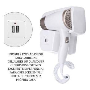 Secador De Cabelo Hotel 1800W Com 2 Usb Suporte Parede 220V