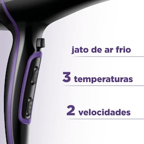 3 temperaturas + 2 velocidades: Ajustes ideais para diferentes tipos de cabelo.