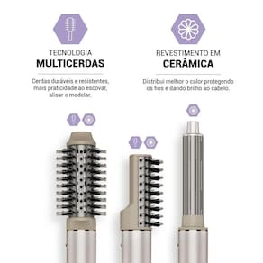 Acessórios inclusos: Escova oval; escova raquete; bocal concentrador; cacheadores