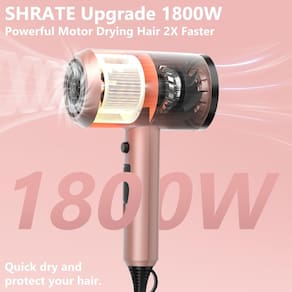 Secador de cabelo iônico leve SHRATE com difusor - Potente secador de cabelo de 1800 W para secagem rápida - Mini secador de cabelo profissional de baixo ruído para viagens, presentes e penteados (dourado) - ? Fluxo de ar forte, seca rapidamente sem machucar o cabelo - A rotação do motor do nosso secador de cabelo é de 20.000 rpm, o fluxo de ar é de 3,2 m³/min, o volume de ar é de até 27,3 m/s, o ruído é de apenas 80 dB, use rápido e silencioso 1800 W AC motor. 18 pás do ventilador de alta qualidade podem produzir um fluxo de ar rápido e estável, e a velocidade de secagem é muito rápida. Nosso secador de cabelo tem pás de ventilador inovadoras sem poeira. É fácil evitar a entrada de poeira. - ? Cuidado capilar com temperatura constante de 134,6° F, tecnologia de íons negativos - reduz a perda de umidade e os danos ao cabelo devido ao superaquecimento e protege o brilho do cabelo. A tecnologia de íons negativos do nosso secador de cabelo reduz o frizz e melhora o brilho. Deixe você ficar cheio de charme e confiança durante todo o dia. - ? Função de baixo ruído e prevenção de superaquecimento - O secador de cabelo pesa cerca de 440 g/0,97 lb (reduz a carga sobre o ombro durante o uso). O comprimento do cabo de alimentação é de 2 m. A tampa traseira removível à prova de poeira evita que a poeira seja sugada para o secador. Pode reduzir o ruído do cabelo encaracolado. Se a temperatura constante for de 57°C para o cuidado do cabelo e a temperatura do hospedeiro estiver muito alta, a energia será desligada automaticamente. - ? 3 bicos, 3 velocidades de vento diferentes - 3 tipos de bicos de volume de ar. 1. Bocal liso: você pode modelar enquanto assoa o cabelo. 2. Bocal de modelagem: controle a direção do vento para coletar o cabelo. 3. Bocal de difusão: reduz o sangramento do cabelo e melhora o brilho do cabelo. Nosso secador de cabelo tem três tipos de ajuste de volume de ar, você pode alternar entre ar quente/ar frio e modo de ar forte. Se você quiser modelar seu cabelo. Você pode pressionar e segurar o botão frio para modelar seu cabelo. - ? Você vale muito a pena - acreditamos que você vai se apaixonar pelo secador de cabelo com sistema iônico SHRATE. Se você tiver alguma dúvida, . Resolveremos qualquer problema para você dentro de 24 horas.