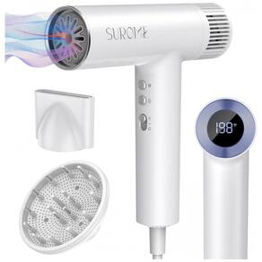 Revitalize seus cabelos com o Secador de Cabelo SUROME. Experimente a revolucionária tecnologia deste secador equipado com um motor BLDC de 110.000 rpm, proporcionando uma secagem rápida e sedosa, suave para seus fios. Com 1300W de potência, controle preciso de temperatura e configurações personalizáveis para todos os tipos de cabelo, incluindo difusor para diferentes estilos. Leve, ergonômico e com design inovador, este secador oferece resultados profissionais sem comprometer a saúde dos seus cabelos.