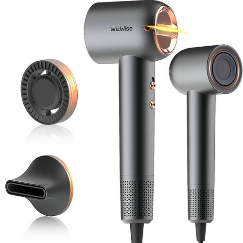 Wizwise Secador de cabelo, secador iônico com bocal de alisamento, secador de cabelo de 1500 W com secagem rápida de 110.000 RPM, 4 temperaturas e 2 velocidades, 2 acessórios para cachos, cinza escuro