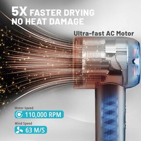 - Secagem ultrarrápida com tecnologia RapidWind: nossa tecnologia RapidWind de ponta possui um potente motor CA sem escovas de 110.000 RPM que gera uma velocidade de vento ultrarrápida de 72 m/s, reduzindo o tempo de secagem e eliminando danos causados pelo calor. Obtenha cabelo de salão rapidamente!