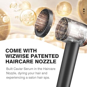 - Bocal condicionador de cabelo exclusivo para proteção multicamadas: nosso bocal condicionador de cabelo exclusivo Wizwise oferece proteção multicamadas, fortalecendo e defendendo o cabelo contra danos. Os usuários relataram uma melhoria de 44,4%, 25,35%, 9,42% no brilho, suavidade e força do cabelo após 28 dias de uso. Use-o na configuração de vento frio (modo de luz azul) para melhores resultados.
