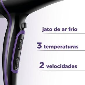 Secador De Cabelos Black Purple Mondial Scn-01 Secador Cabelo Scn-01 127v/60hz . Secagem rápida e eficiente com o novo Secador de Cabelos Black Purple Mondial SCN-01. São 2.000W de potência para uma secagem completa. Com a tecnologia tourmaline íon que sela a cutícula dos fios, eliminando frizz e dando mais brilho e maciez aos seus cabelos! Seu bocal direcionador direciona o fluxo de ar, facilitando a secagem e a modelagem. As 2 velocidades e 3 temperaturas permitem que você alterne entre elas para obter o resultado desejado. Para maior durabilidade e segurança o Secador de Cabelos Black Purple SCN-01 possui também grade traseira removível que irá te dar aquela ajudinha na hora de limpar o produto, aumentando sua vida útil. 1 ano de garantia. Modelo - SCN-01 Cor - Preto/ Roxo Voltagem (Tensão) - 127V/220V Itens inclusos - 01 Secador de Cabelos; 01 Manual de Instruções. Comprimento do cabo - 1,70cm Controle de temperatura - Sim Controle de velocidade - Sim, 02 velocidades Níveis de temperatura - 03 níveis Potência - 2000W Grade traseira removível - Sim Peso - 0,620kg Jato de Ar Frio - Sim Garantia - 1 Ano Marca - Mondial Ean: 7899882312522