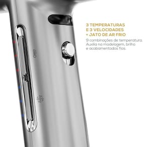 Desfrute da versatilidade das 3 temperaturas, 3 velocidades e do jato de ar frio, permitindo até 9 combinações ideais para todos os tipos de cabelo.