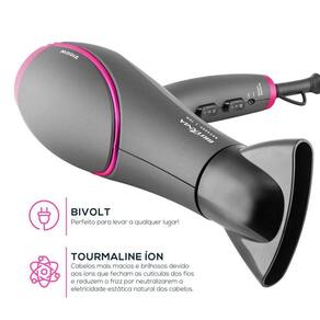 Sua versatilidade bivolt torna ele perfeito para levar a qualquer lugar, garantindo praticidade onde quer que você vá. Equipado com a tecnologia Tourmaline Íons, o Secador de Cabelos Britânia proporciona cabelos mais macios e brilhosos ao fechar as cutículas dos fios e reduzir o frizz, neutralizando a eletricidade estática natural dos cabelos.
