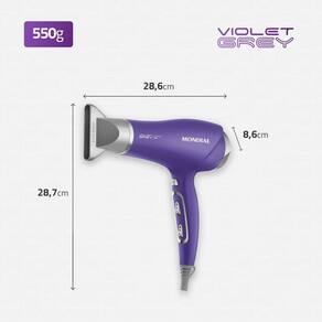 Secador De Cabelos Mondial - Scn-05 Secador De Cabelos Scn-05 220v/60hz O secador de cabelo Violet Grey SCN-05 da Mondial garante mais praticidade e eficiência à sua rotina de cuidados. Possui revestimento com Tourmaline Íon, que fecha as cutículas dos fios, aumenta o brilho e reduz o frizz. Além disso, o secador conta com 2.000W de potência, 3 temperaturas, 2 velocidades e jato de ar frio. Mais brilho e maciez aos seus cabelos da raiz até as pontas! Saiba mais sobre o SCN-05 da Mondial: REVESTIMENTO COM TOURMALINE ÍON: Com o calor, o mineral emite íons negativos que fecham as cutículas dos fios e reduzem o frizz. Seu cabelo fica mais brilhante e macio!