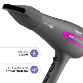 Com 2100W de potência, o Secador de Cabelos Philco proporciona força, poder e durabilidade em um único produto, garantindo a melhor performance de uso.