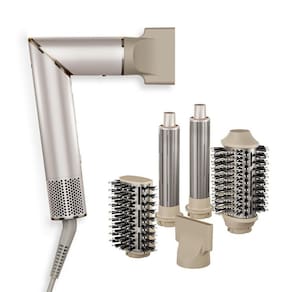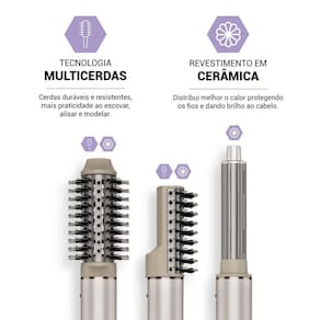 - 1 Secador Multifunções com 4 acessórios: 1 Cacheador Horário 1 Cacheador Anti -horário 1 Escova Oval 1 Escova Raquete 1 Bocal Concentrador de Ar