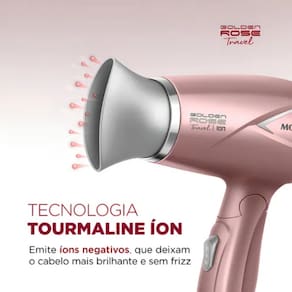 Diferenciais Competitivos Potência Portátil: Apesar de compacto, entrega alta eficiência na secagem dos fios com seus 1200W. Design Dobrável e Portátil: Ideal para viagens, academias ou uso no dia a dia, cabe em qualquer bolsa ou mala. Flexibilidade de Uso: Com 2 velocidades e temperaturas ajustáveis, atende diferentes tipos de cabelos e preferências. Bocal Direcionador: Permite resultados mais precisos, protegendo os fios e ajudando no processo de modelagem. Estilo e Beleza: O acabamento elegante em Golden Rose confere charme ao produto, tornando-o não apenas funcional, mas também sofisticado.