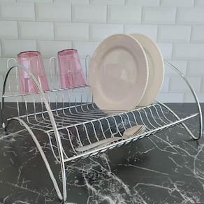Secador Escorredor de Louça para 16 Pratos 6 copos e Talheres Maya Schmitt Cromado #Design e praticidade #Qualidade Schmitt #Cozinha moderna Garantia: 90 dias / Peso: 920g / Cor: Cromado / Ref: 151019 Dimensões: 40cm (C) x 37cm (L) x 20,5cm (A) Dimensões área para pratos: 35cm (C) x 16cm (L) x 7cm (A) Distância do aramado de encaixe do prato: 2cm (L) Dimensões área para talheres: 35cm (C) x 9,5cm (L) x 4cm (A) Dimensões área para copos: 2,5cm (L) x 10cm (A) Comporta: até 16 pratos, 6 copos, talheres e outros utensílios. Limpeza e Cuidados: - Não lavar com materiais abrasivos; - Limpar com pano úmido ou detergente neutro; - Não deixar o produto em local úmido quando não estiver utilizando; - Guardar sempre limpo e seco, pois o acumulo de água acelera a oxidação. Material: - Aço Cromado. Com o Escorredor de Louça Maya da Schmitt, sua pia fica organizada enquanto as suas louças secam. Seu design é diferenciado, e por ser produzido em aço cromado, deixa sua cozinha com o design mais moderno. Ele acomoda até 16 pratos, 6 copos, talheres e outros utensílios. Este secador de louças é ideal para quem procura praticidade e beleza em um único produto.
