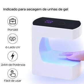 Secador Estufa de Unhas em Gel UV Ultra Violeta Portátil 6 Leds - Marca: Dremax - Referência: SCU6 - Potência: 24W - 6 Leds UV - Carregamento por USB - Leve e portátil - Display temporizador 45/60s - : 90 dias contra defeitos de fabricação Marca: Não Informado Ean: 7734625982641