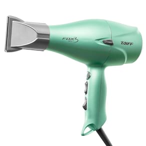 SECADOR FOX ÍON 3 GREENLeve e elegante, o secador Fox Íon 3 proporciona muito mais conforto durante o uso, semperder a potência de 2200W.Na cor Soft Green dá a ele um estilo próprio e muita sofisticação.Os íons negativos selam as cutículas dos fios, deixando os cabelos macios e com brilho, e obotão para jato de ar frio fixa a modelagem e diminui o frizz.Sua tampa traseira magnética facilita a limpeza, proporcionando maior durabilidade dosecador.O cabo de 3 metros de comprimento permite ao profissional maior mobilidade.