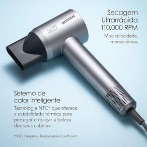 Tecnologia NTC (Negative Temperature Coefficient) com controle automático da temperatura selecionada, mantendo-a estável para proteger os fios do excesso de calor.