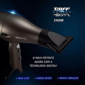 O Secador Profissional Taiff Unique Digital 3100W 220V apresenta a revolução do motor digital Taiff para transformar sua rotina de trabalho. Este secador oferece a mais alta tecnologia para profissionais que buscam proporcionar a melhor experiência aos seus clientes. Combinando a eficiência do motor digital com um design ergonômico, o lançamento permite máxima qualidade e desempenho com leveza, conforto e rapidez, proporcionando uma vida útil até 5x maior. O design leve contribui para produções impecáveis: o motor digital proporciona uma sensação mais leve durante o uso do secador, tornando-o confortável e com menos vibração. Seu design possibilita produções impecáveis e contínuas, reduzindo a fadiga durante o uso. Além disso, a tecnologia cerâmica auxilia a selar as cutículas dos fios, resultando em cabelos macios e hidratados, com menos frizz.