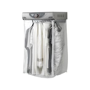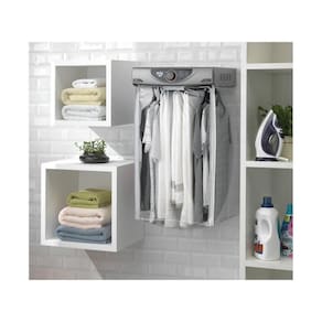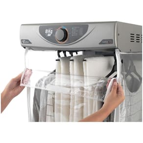 o painel com todas as indicações de tempo de secagem é muito fácil de usar! disponível na cor branca, com 3 varais fixos, 6 cabides removíveis, fechamento por zíper , proporciona beleza e praticidade para seu dia a dia.
