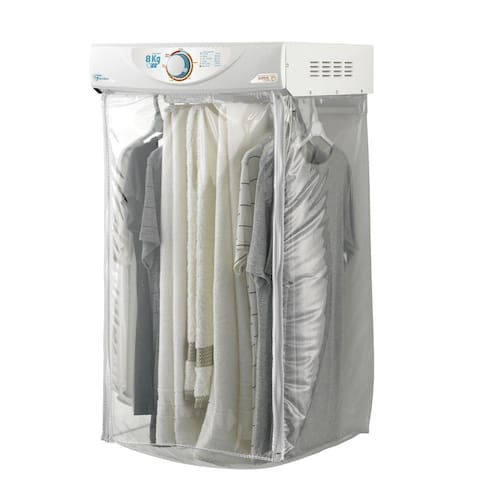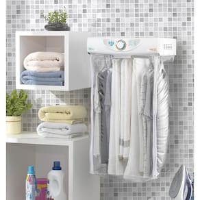 O painel com todas as indicações de tempo de secagem é muito fácil de usar! Disponível na cor branca, com 3 varais fixos, 6 cabides removíveis, fechamento por zíper e velcro, proporciona beleza e praticidade para seu dia a dia.
