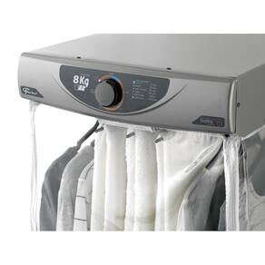 O painel com todas as indicações de tempo de secagem é muito fácil de usar! Disponível na cor silver, com 3 varais fixos, 6 cabides removíveis, fechamento por zíper e velcro, proporciona beleza e praticidade para seu dia a dia.