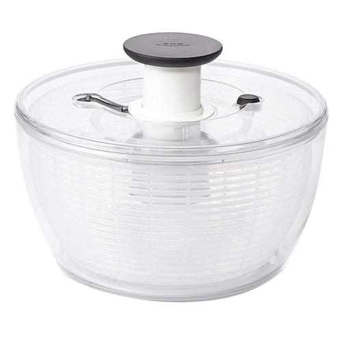 O Spinner de Salada Oxo Good Grips é um premiado lavador e secador de saladas que, além de seu facilitador e macio botão à tampa que faz com que o bowl gire com precisão e seca mais rapidamente as folhas, possui uma base antiderrapante que evita maiores acidentes na cozinha. A cesta também pode ser usada como um coador.