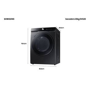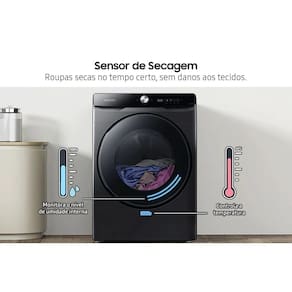 Modelo: DVG20A6470V/AZ A secagem de roupas acaba de ficar mais inteligente. Com um painel de controle intuitivo, essa secadora inteligente e conectada identifica os hábitos de secagem mais utilizados, recomenda os ciclos ideais e ainda exibe durante a secagem as informaçõs mais importantes. Quer tornar o processo ainda mais simples? Com o app SmartThings você pode planejar sua secagem, obter dicas e recomendações e receber ajuda para conservar sua máquina. E quando conectado a uma lavadora compatível, ele ainda seleciona automaticamente o ciclo de secagem perfeito para sua lavagem. Revitaliza e deixa as roupas mais macias rapidamente, sem precisar fazer uma lavagem completa ou secar itens que já estão limpos. A tecnologia Multi Vapor, presente em alguns ciclos e funções da secadora, utiliza vapor para remover odores, reduzir amassados e a estática das roupas.Confie na sanitização perfeita da secadora Samsung, que elimina 99,9%* das bactérias e alérgenos das suas roupas.Um sensor preciso detecta o nível de umidade interna, otimizando a duração do ciclo de secagem e a temperatura, e evitando que os tecidos sejam expostos tempo demais desnecessariamente. Para a secagem de roupas e acessórios delicados e especiais, como tênis e malhas, você pode utilizar o rack de secagem e proteger ainda mais as suas peças preferidas. É só abrir a secadora, posicionar o rack, colocar as suas peças e ligar a secadora!