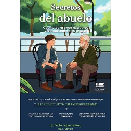 Secretos del abuelo. Cuento para crear estilos de vida saludables sin drogas, narra la historia de un abuelo, Lido, y su nieto, Pablito. Habiendo vivido muchos años y experimentado el mundo trágico y negativo con las drogas, proyecta como misión, a través de su nieto, el salvar a todos los niños y adolescentes del mundo de los peligros que estas conllevan. Así, busca enlistar la ayuda de Pablito y para ello le cuenta la historia de su vida (sus «secretos») y como esta, por diversos motivos, lo llevó al camino de la adicción, lo que le terminaría perjudicando para toda su vida. Mediante la narración de esta experiencia, abuelo y nieto crean la «fórmula mágica», una suerte de método en el mundo real para que el lector niño y adolescente puedan prevenir el uso, abuso y consumo de las drogas. Pablo, siendo ya psicólogo clínico, añade y aporta el «glosariocientífico» sobre las drogas, parte muy importante de este trabajo donde psicoeduca al lector. Marca: BIBLIOMANAGER