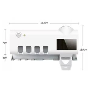 Segurança em cada escovação: porta escova de dente com esterilizador uv automático led. o esterilizador de escova de dente é um porta-escova multifuncional inteligente que limpa E protege sua região bucal. quando você não estiver usando a escova de dentes, esterilize a mesma. o sistema de sensor infravermelho inteligente é ativado quando uma pessoa se aproxima e esteriliza depois que A pessoa sai. o esterilizador de escova de dentes possui um sistema de carregamento solar que não requer luz Solar direta e pode ser carregado quando exposto à luz. armazenamento de energia da bateria de lítio, economia de energia e proteção ambiental. livre-se completamente das das tomadas. nenhuma fonte de alimentação externa é necessária pode-se usar cabo usb , tornando o ambiente do banheiro Bonito. luz ultravioleta + fotocatalisador esterilizador de escova de dente. é um porta-escova multifuncional inteligente que limpa e protege sua região bucal. Características do produto: - porta escova de dentes com esterelizador uv - empremedor de pasta de dentes - lâmpada de led germicida de onda curta - esterelização em 6 minutos - tamanho: alt:12cm x larg:5cm x comp:19cm - peso aproximado: 250g - entrada: dc5v - voltagem: dc3.7v - capacidade bateria: 1200mah - placa de energia solar Marca: Não Informado