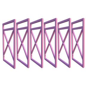 atenção os suportes enviados são os que não enferruja e não descasca pintura. Local de fixação: parede não acompanha as madeiras. Suporte: 6 peças - altura total = 37cm - largura interna = 20cm - espessura do tubo maciço em plástico = 15x15mm - distância entre madeiras = 25cm - cor = rosa - peso suportado = 60kg - material durável - indicado utilizar um suporte a cada 60cm de distancia